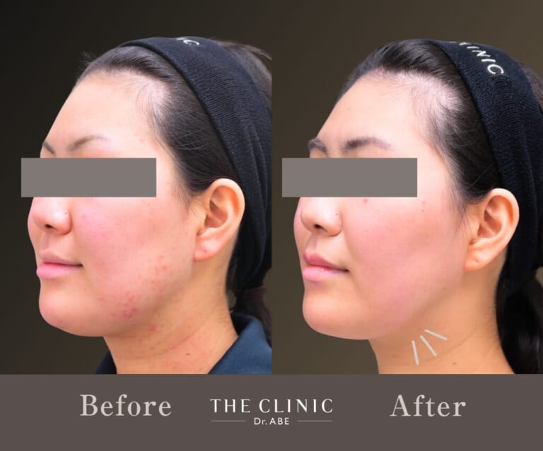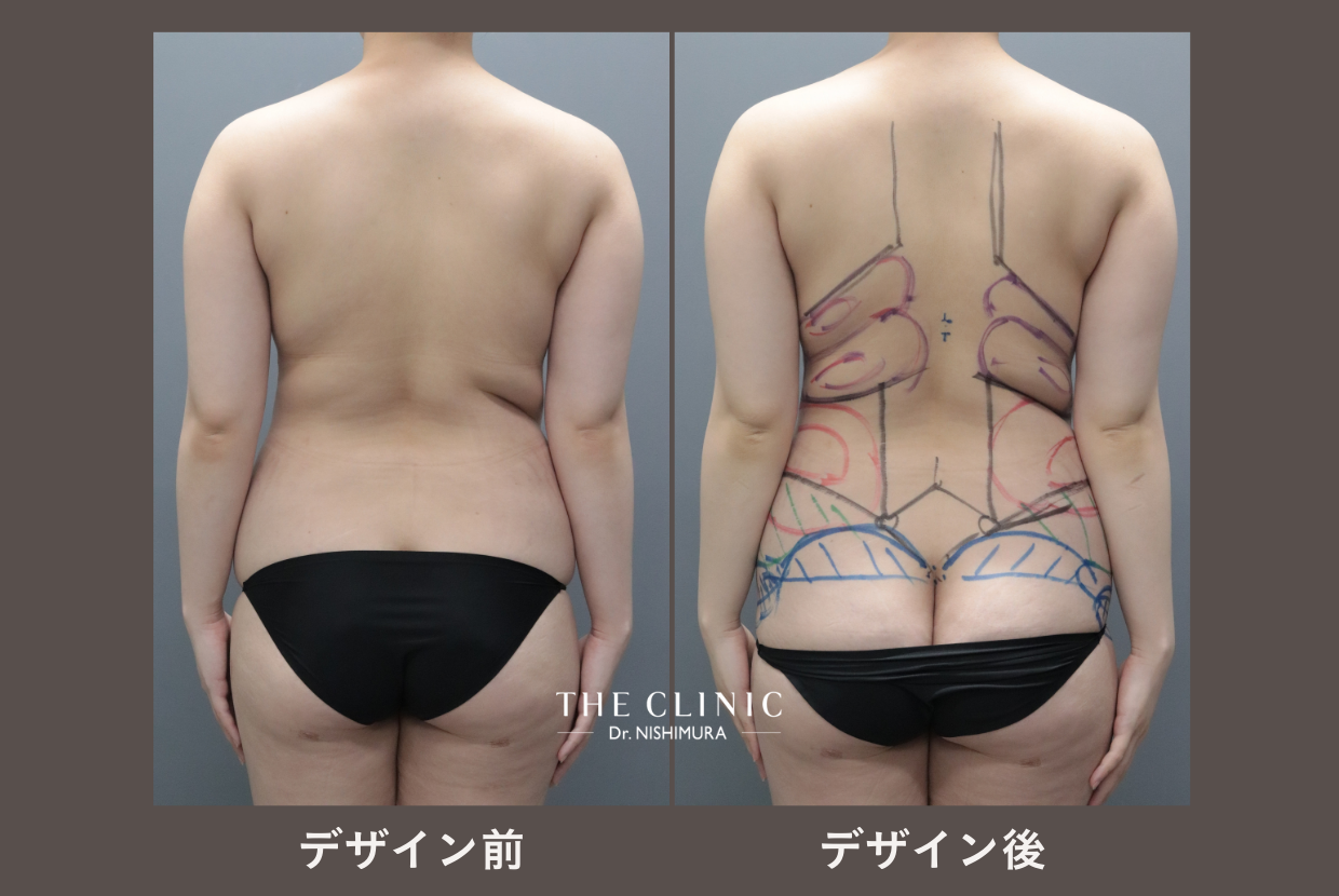 施術の説明 | 来年の春・夏に向けて、足を細くしたいとご来院された20代の女性です。大量の脂肪を除去したため、従来の方法では皮膚のたるみが残ったかもしれません。しかし、ベイザー脂肪吸引の引き締め効果でキレイに仕上がっています。ボリュームが一回りもダウンし、形もまっすぐに整って、長く見える足になりました。 |