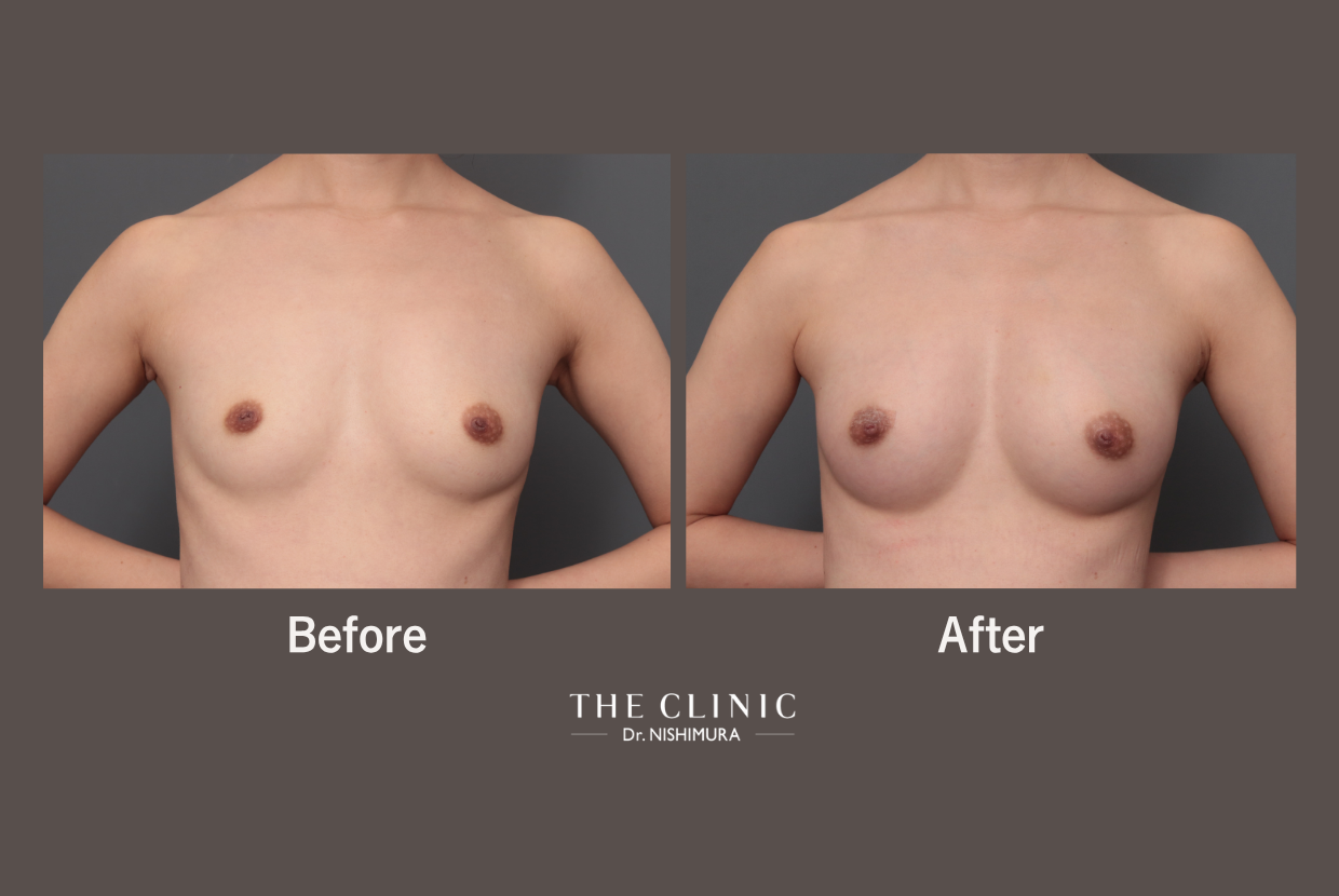 施術の説明 | 脂肪を、直径2.4㎜以下の細かい粒で注入する「2.4mmヌードルインジェクション技術」を使って、コンデンスリッチ豊胸を行いました。この方法は、少しの脂肪も無駄にすることなく、定着させることが可能なので、採取できる脂肪の量が少ない方に向いています。こちらのゲストも、アンダーにしっかり影ができるほど、ボリュームのあるバストに仕上がりました。 |