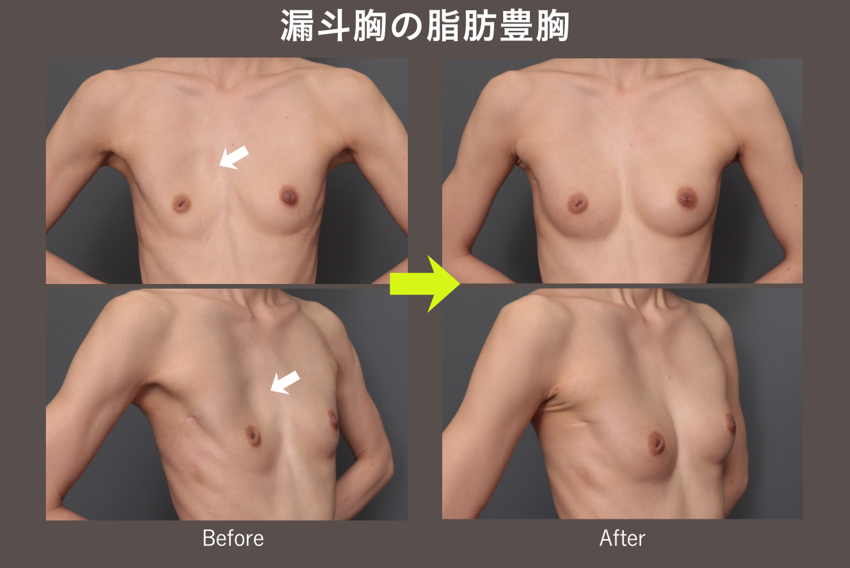 | 施術の説明 | 脂肪を、直径2.4㎜以下の細かい粒で注入する「2.4mmヌードルインジェクション技術」を使って、コンデンスリッチ豊胸を行いました。この方法は、少しの脂肪も無駄にすることなく、定着させることが可能なので、採取できる脂肪の量が少ない方に向いています。こちらのゲストも、アンダーにしっかり影ができるほど、ボリュームのあるバストに仕上がりました。 |